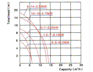 型號 | 揚程(m) | 流量(m3/h) | 電壓、頻率(V、Hz) | 功率(kw/HP) | 配管內徑(mm) | 外形尺寸(cm) | 重量(kg) |
